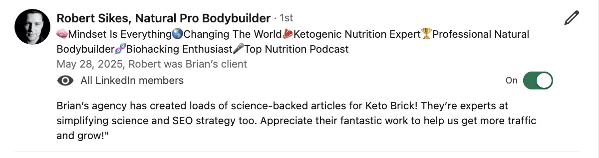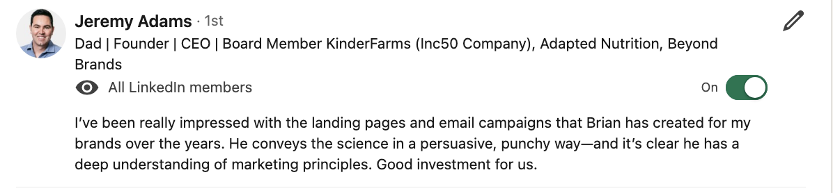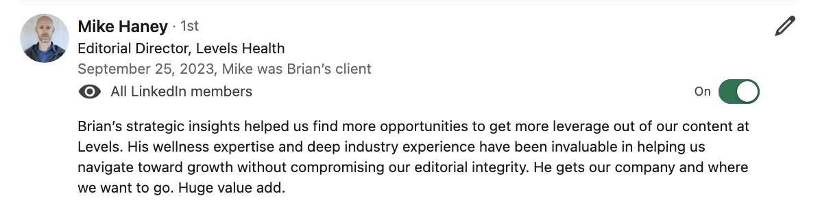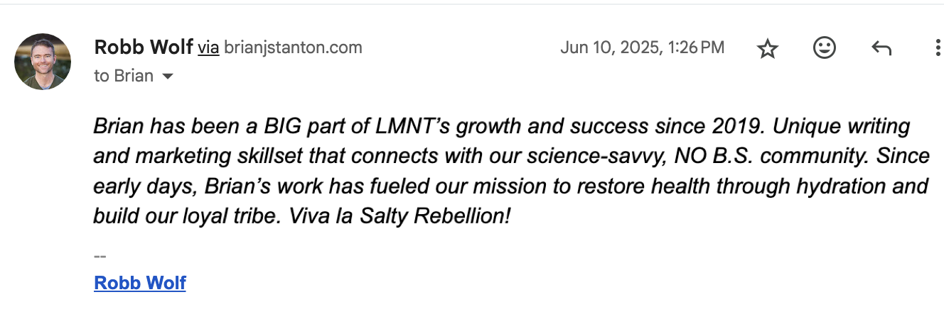 “Brian has been a BIG part of LMNT’s growth and success since 2019.”